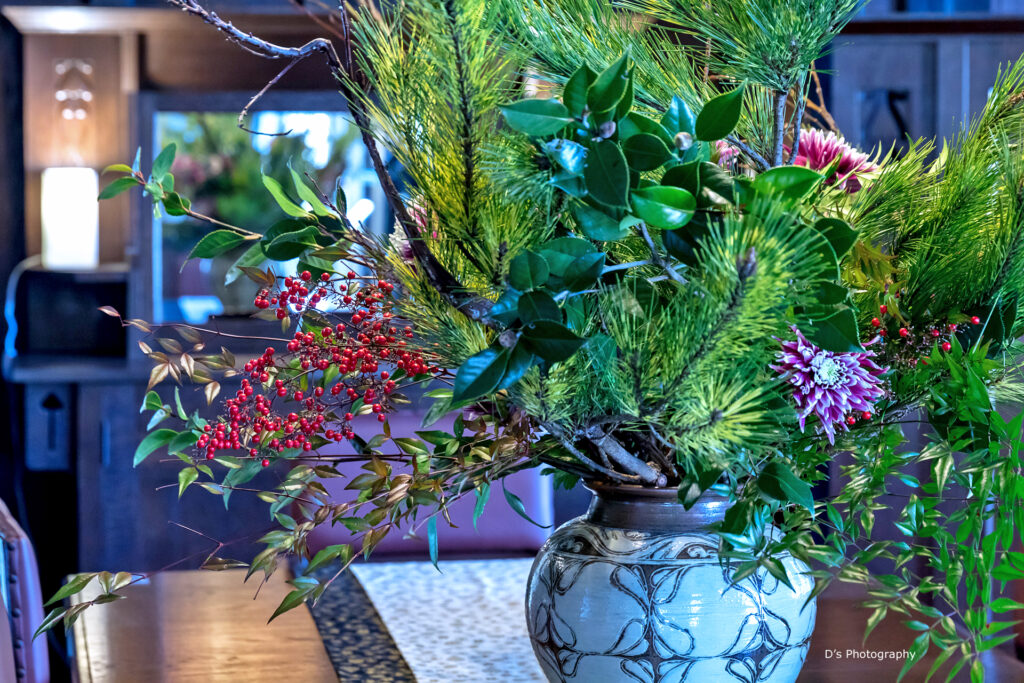 山手西洋館の新春装飾、5館目は外交官の家の「華で迎えるお正月」です。