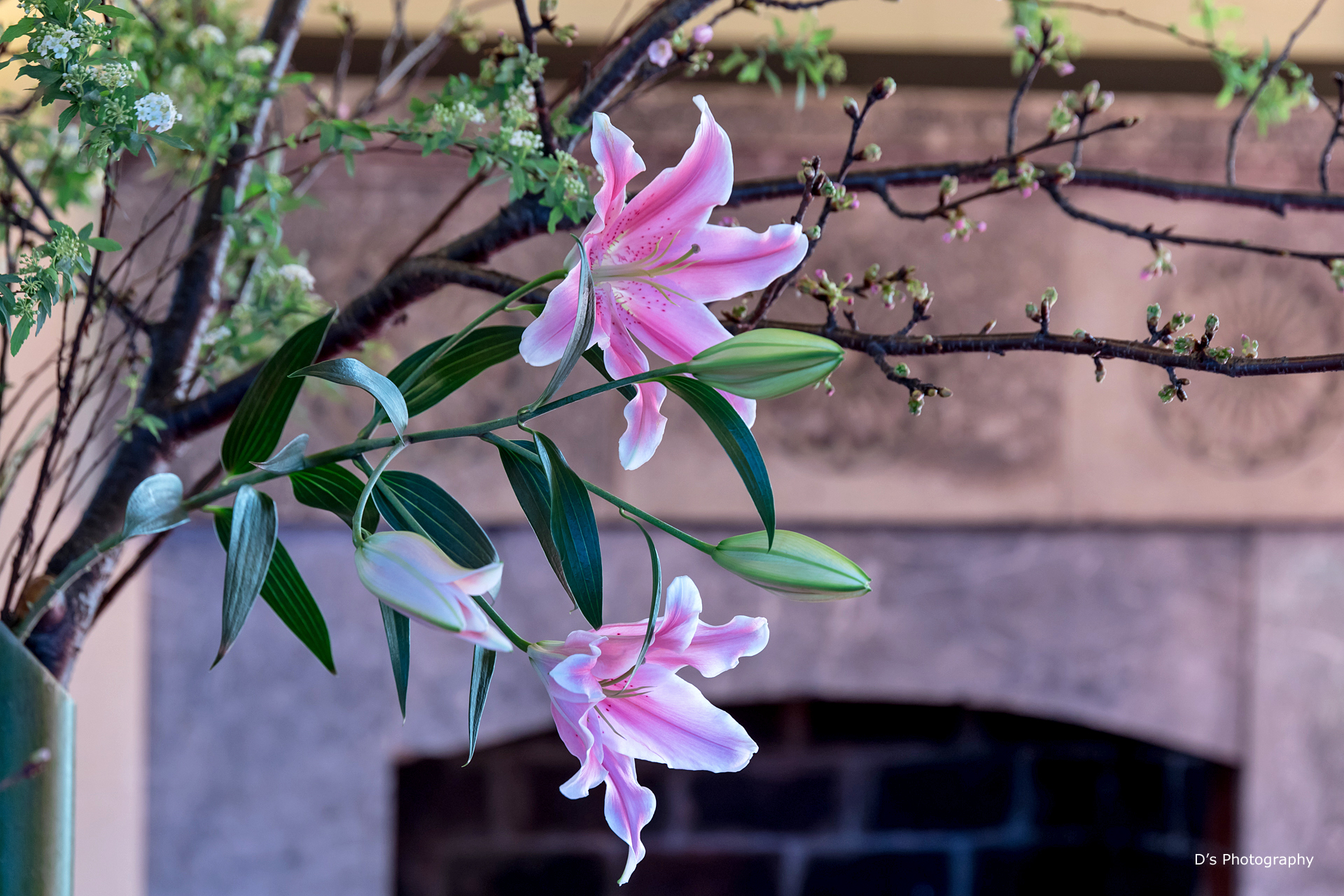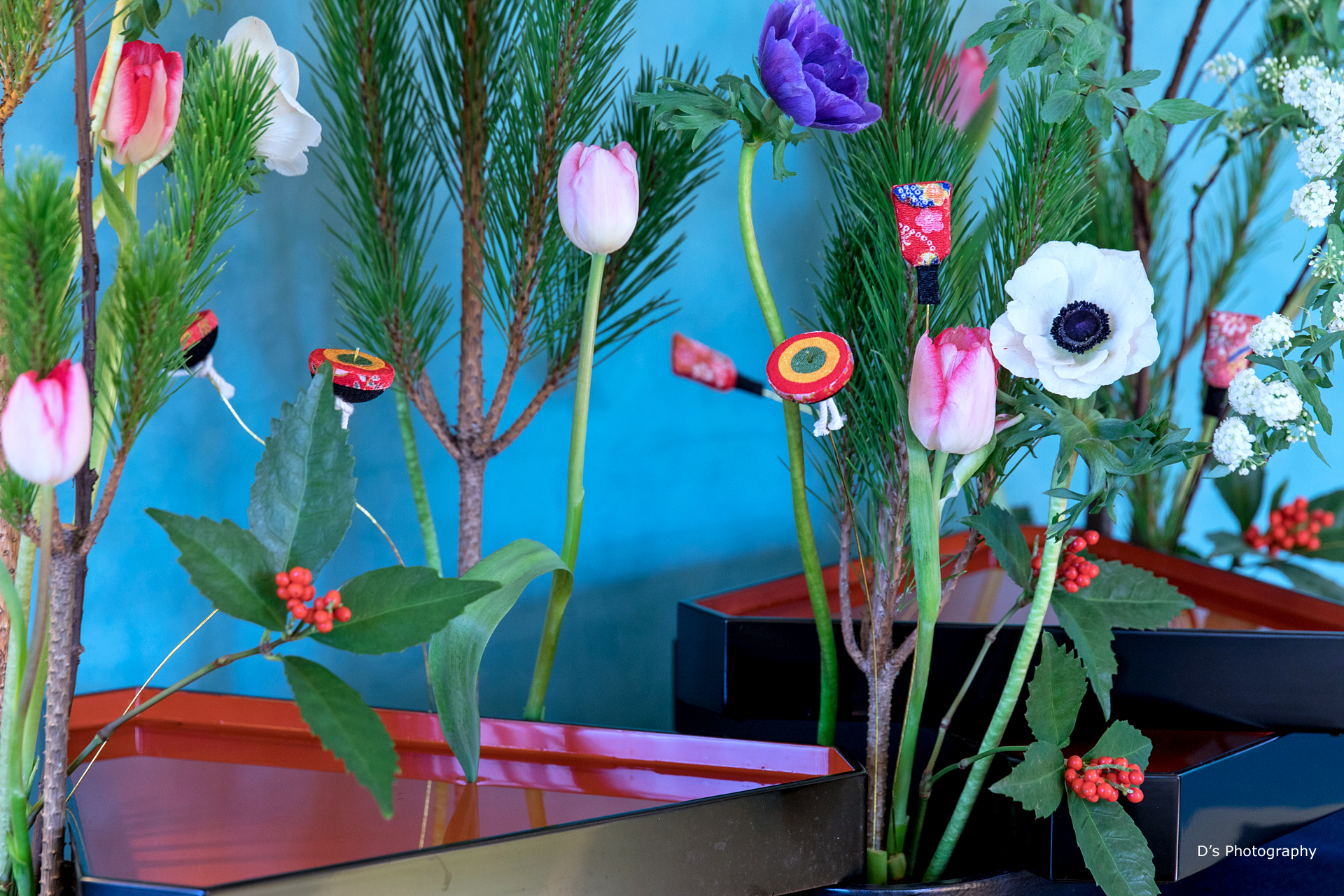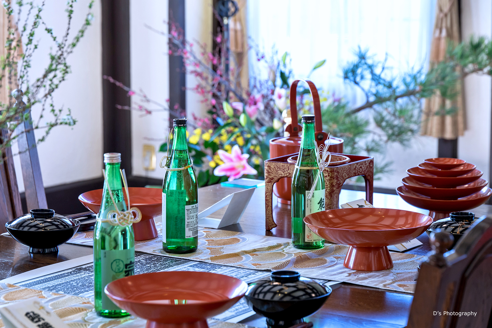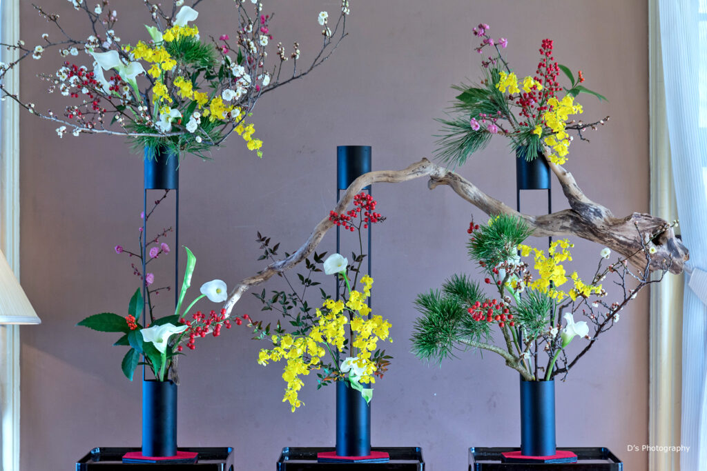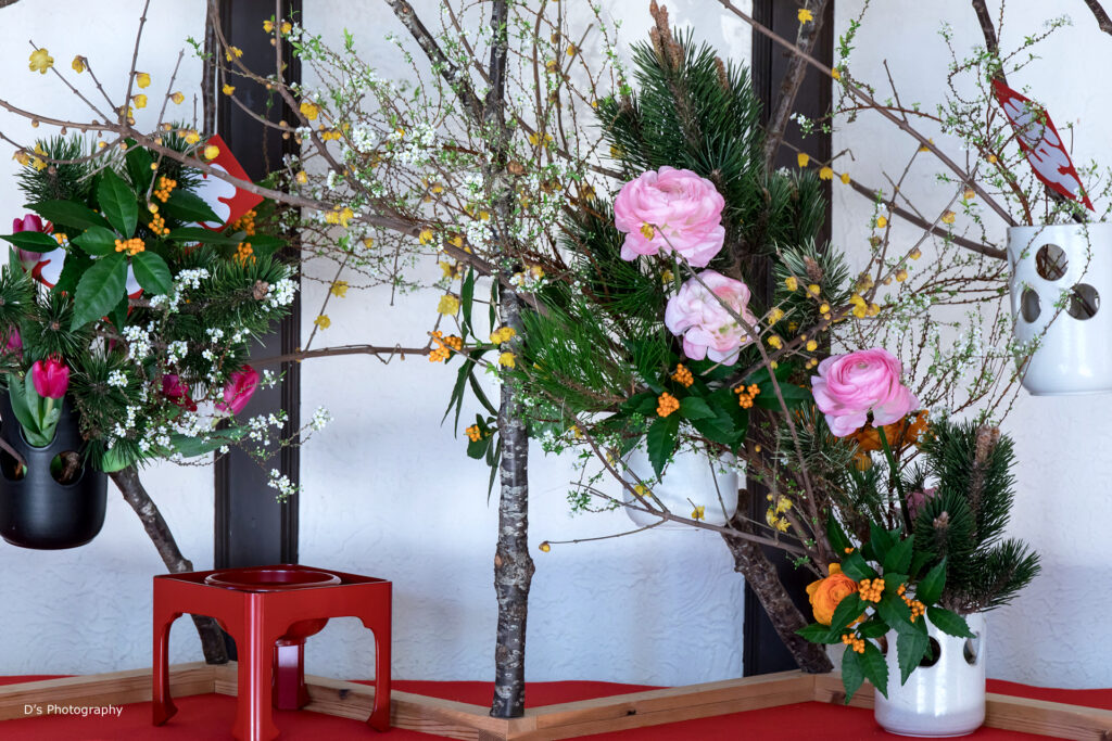 山手西洋館・新春装飾[6] 2026-1-12 0 dekimaro いけばな テーブル装飾 新春装飾 山手西洋館の新春装飾、6館目はベーリックホールの「いけ花と漆器」です。[撮影:2026年1月9日] 共通機材:EOS 5D mark IV / TAMRON 35-150mm F2.8-4 Di VC OSD装飾:一葉式いけ花、大崎悦子、カヤマジュンコ、梶田恵臣