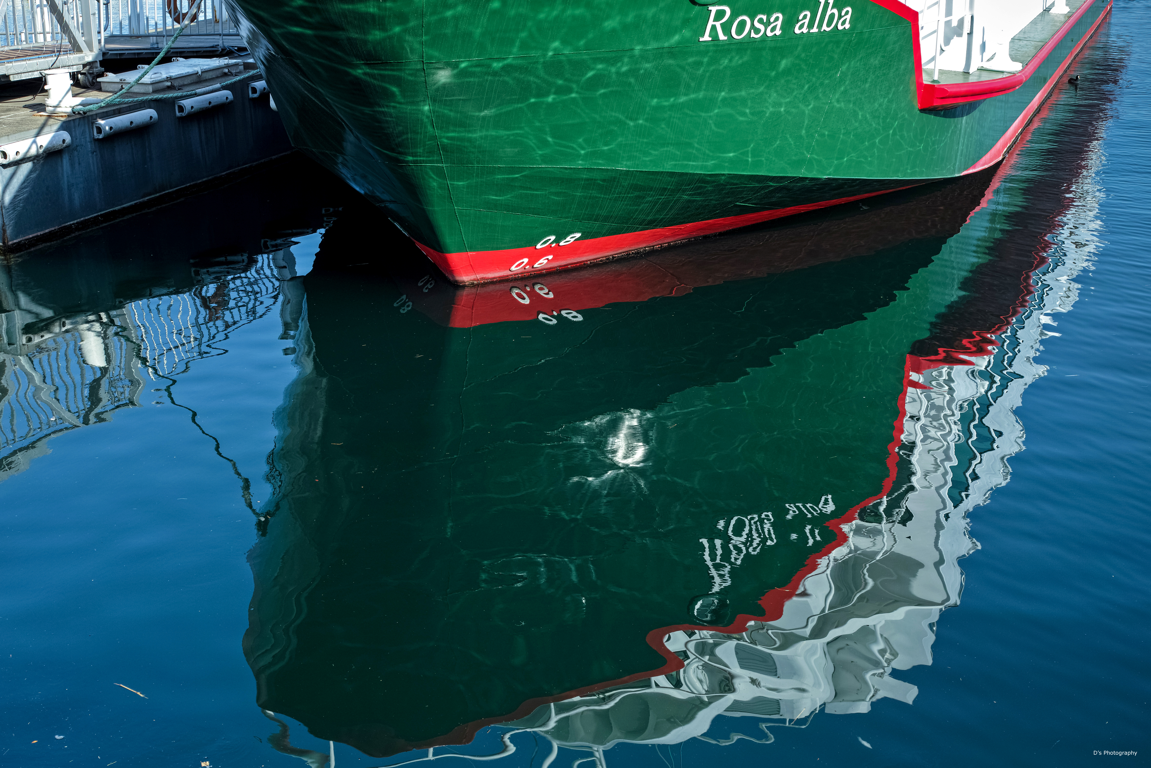 水面への映り込みと、船体への反射が綺麗です